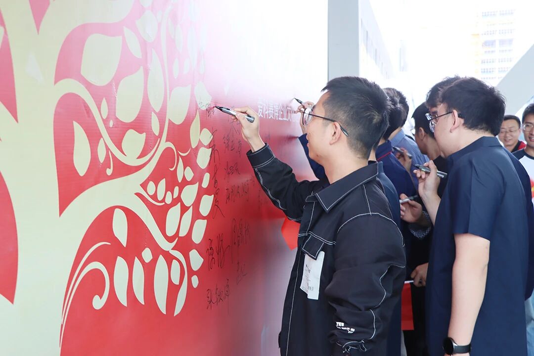 升旗儀式后,愛科員工們?cè)凇稅劭菩袆?dòng)宣言》發(fā)布儀式簽到墻前熱情簽到、合影。一張張笑臉,一個(gè)個(gè)簽名,無不彰顯著全體員工對(duì)愛科賽博企業(yè)文化建設(shè)的積極參與和高度期待。